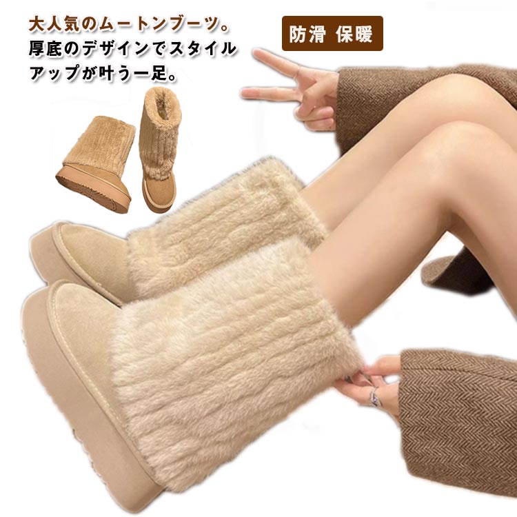 美脚 裏ボア 防寒 厚底 防寒 ムートンブーツ ブーツ おしゃれ もこもこ 冬靴 ファー スノーブー・・・
