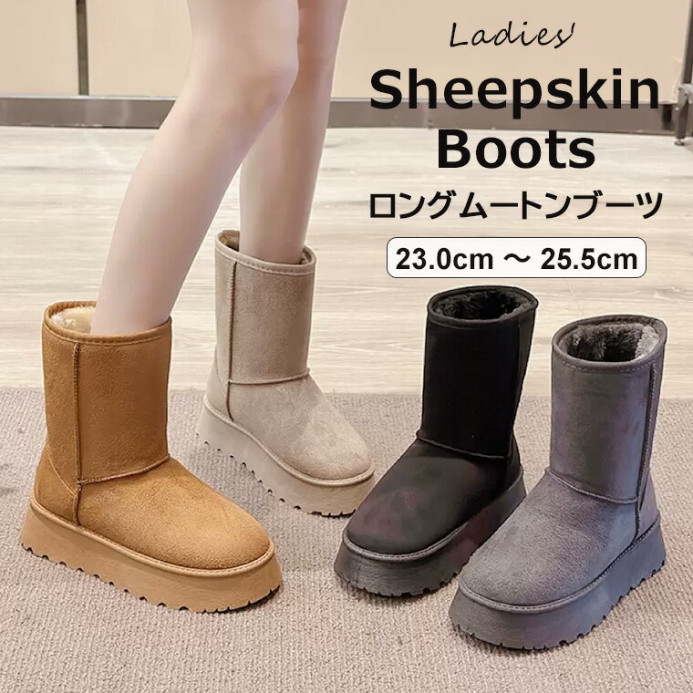 ムートンブーツ 裏起毛 スノーブーツ ミドル丈 レディース ミドルブーツ 冬 シューズ 靴 厚底ブー・・・