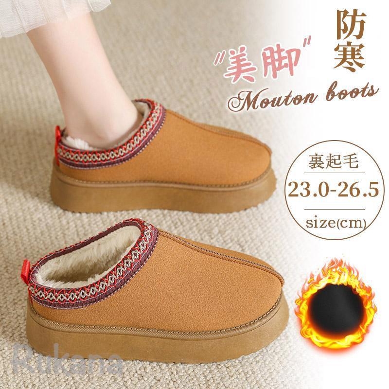 厚底ムートンブーツ レディース もこもこ 裏起毛 ショートブーツ 秋冬 ファーシューズ プラットフォ・・・