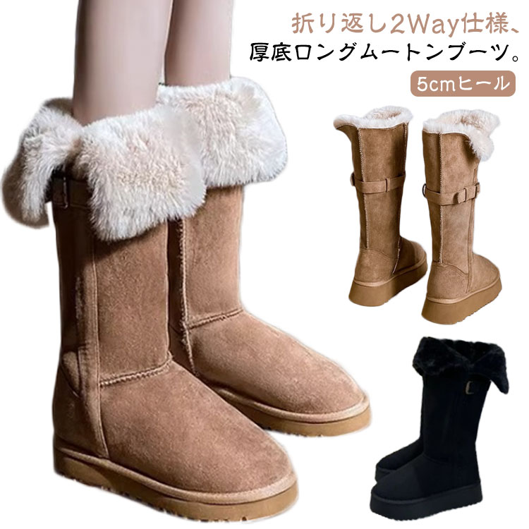ブーツ ボア ロング ロングブーツ 防寒 裏起毛 レディース 折り返し2WAY ムートンブーツ 極暖・・・