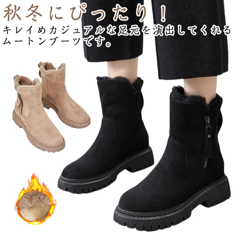 \ポイント8倍/厚底 ムートンブーツ レディース チャンキーソール ショートブーツ カジュアルシュー・・・