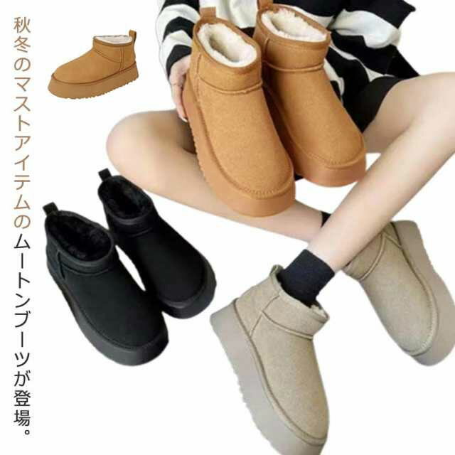 ムートンブーツ レディース ショートブーツ ムートン 厚底 撥水 防滑 痛くない 暖かい 歩きやすい・・・