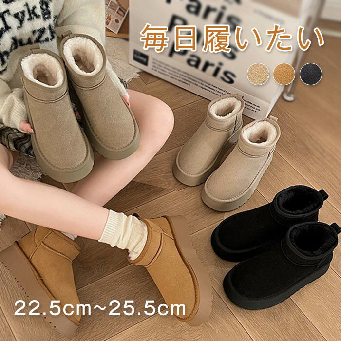 ムートン 厚底 スエード ファー 軽量 疲れない 痛くない 防寒ブーツ スノーブーツ レディース シ・・・