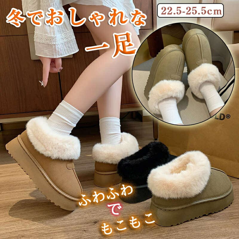 送料無料 ショートブーツ ムートンブーツ 厚底 レディース 女性用 靴 無地 スエード調 裏ボア フ・・・