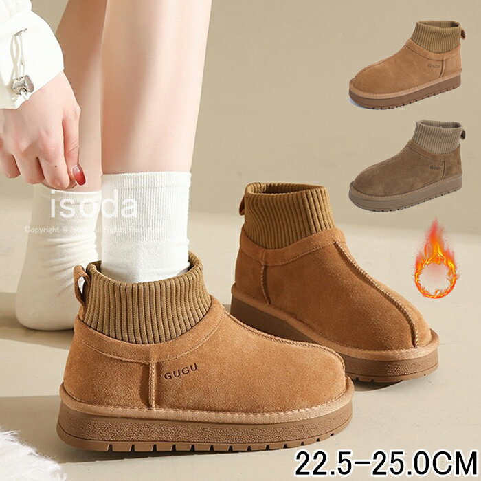 ムートンブーツ レディース 裏起毛 ショートブーツ ニットブーツ 靴 ブーツ スノーブーツ 裏ボア ・・・