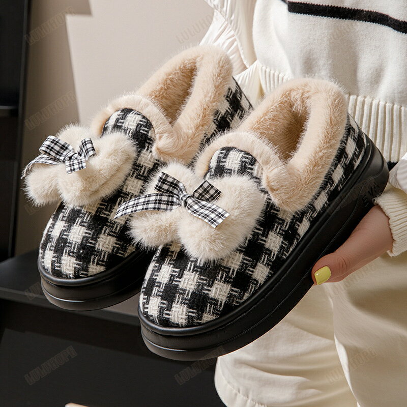スノーブーツ レディース ムートンブーツ 裏ボア 裏起毛 千鳥柄 スリッポン サイドゴア 厚底 ぺた・・・