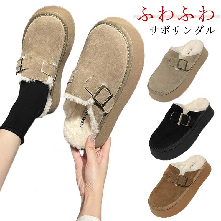 厚底 ファー レディース ムートンシューズ ボア スエード スリッポン スリッパ ぺたんこ ムートン・・・