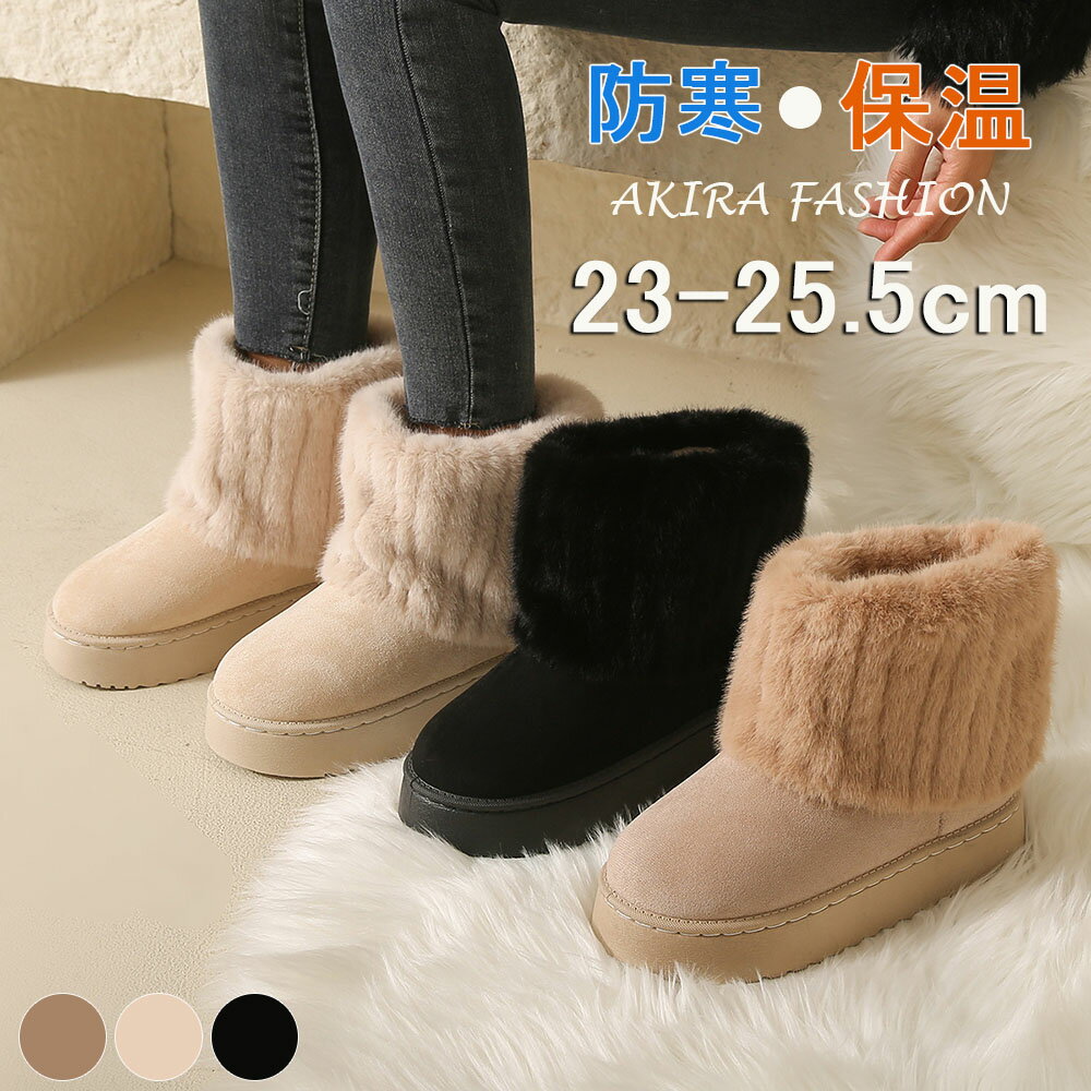 ムートンブーツ レディース スノーブーツ 厚底 ファーシューズ ショートブーツ ボア あったか もこ・・・