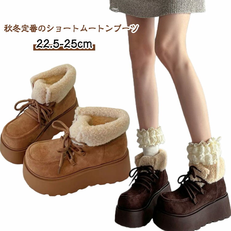 厚底 ムートンブーツ ショートブーツ レディース 綿靴 雪靴 スノーシューズ 歩きやすい スノーブー・・・