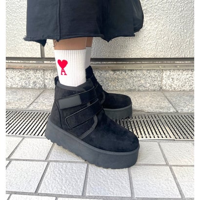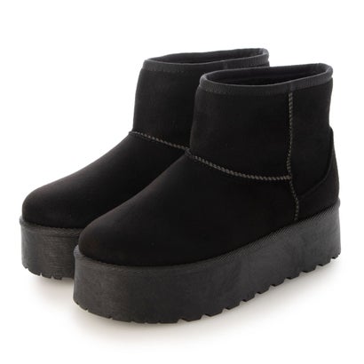 【もふぽか】ヴィヴィアン VIVIAN 厚底ムートンブーツ (ブラックスエード)