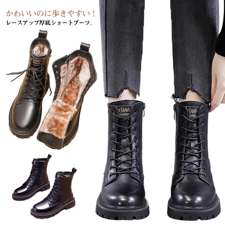 厚底 ショートブーツ ワークブーツ 裏起毛 レディース 冬ブーツ PU ショートブーツ 裏ボアブーツ・・・