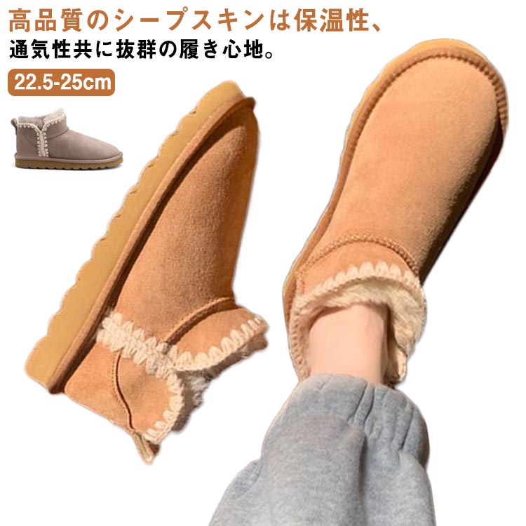 ショート ムートンブーツ レディース 靴 スノーブーツ ミニ ブーツ 内ボア 防寒 雪靴 あったか ・・・
