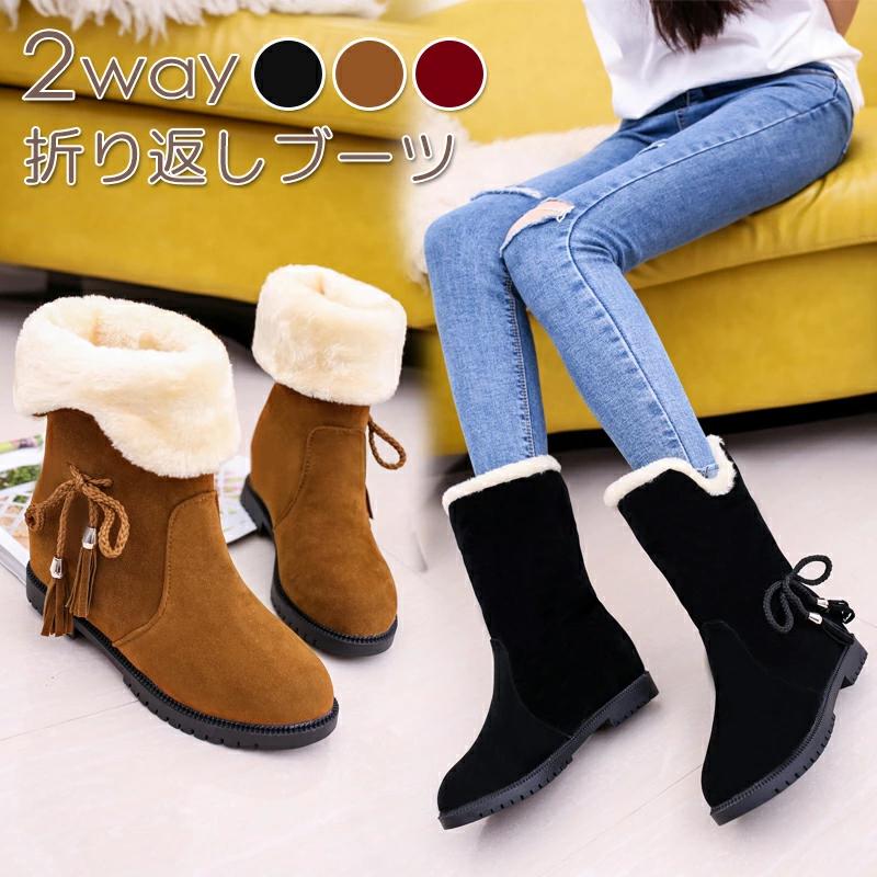 ブラック ネイビー レッド ブラウン ムートンブーツ レディース スノーブーツ ミドルブーツ ロング・・・