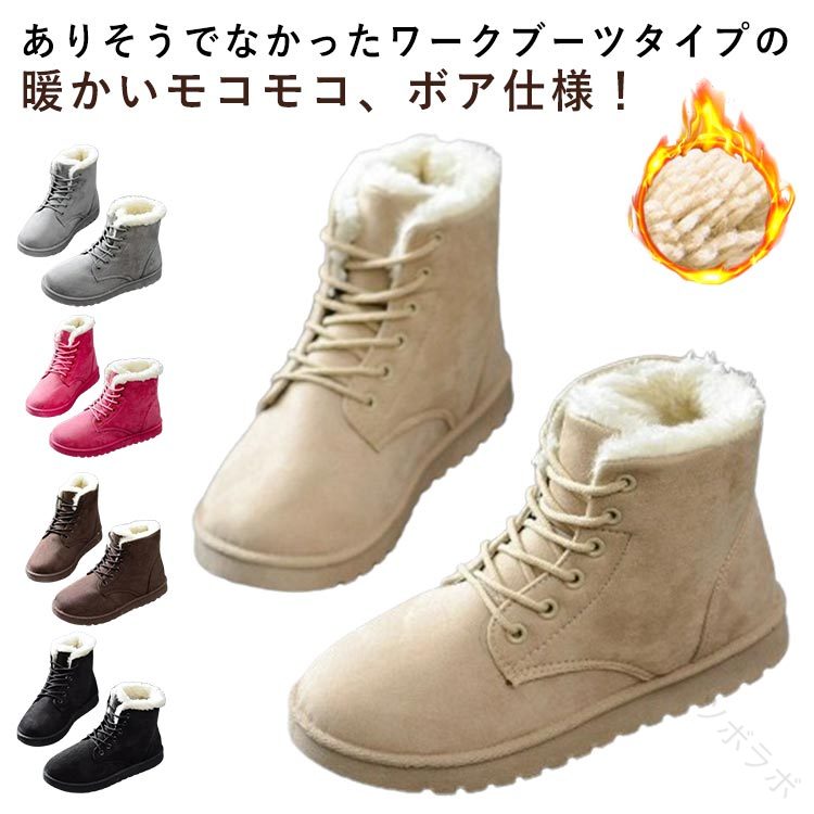 グレー レディース 編み上げ スノーブーツ スエード 冬 裏起毛 秋 ショート 秋冬 黒 赤 ピンク・・・