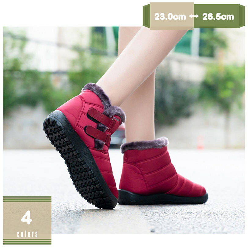 300円OFFクーポン スノーブーツ 黒 大人 レディース 防水 赤 裏起毛 サイドジップ 雪遊び ・・・