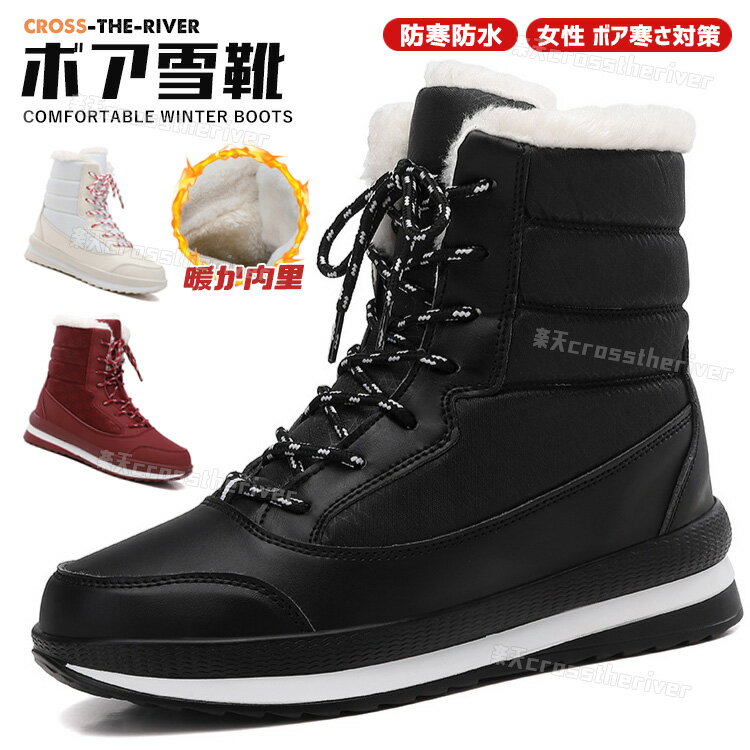 スノーブーツ レディース あったか スノーシューズ 雪靴 ムートンブーツ ブラック ホワイト レッド・・・