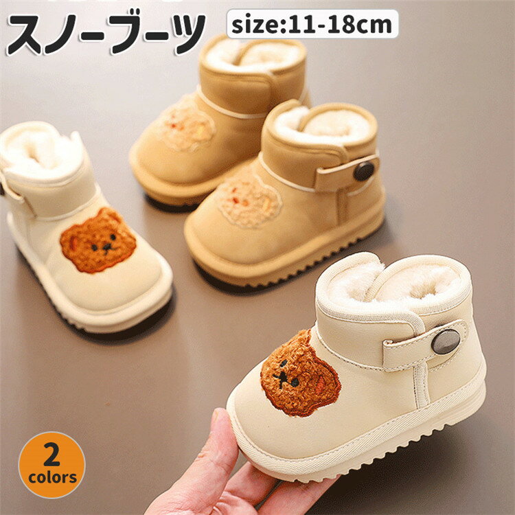キッズ ムートンブーツ ベビー ブーツ 裏ボア 裏起毛 クマ柄 スノーブーツ 赤ちゃん 女の子 男の・・・