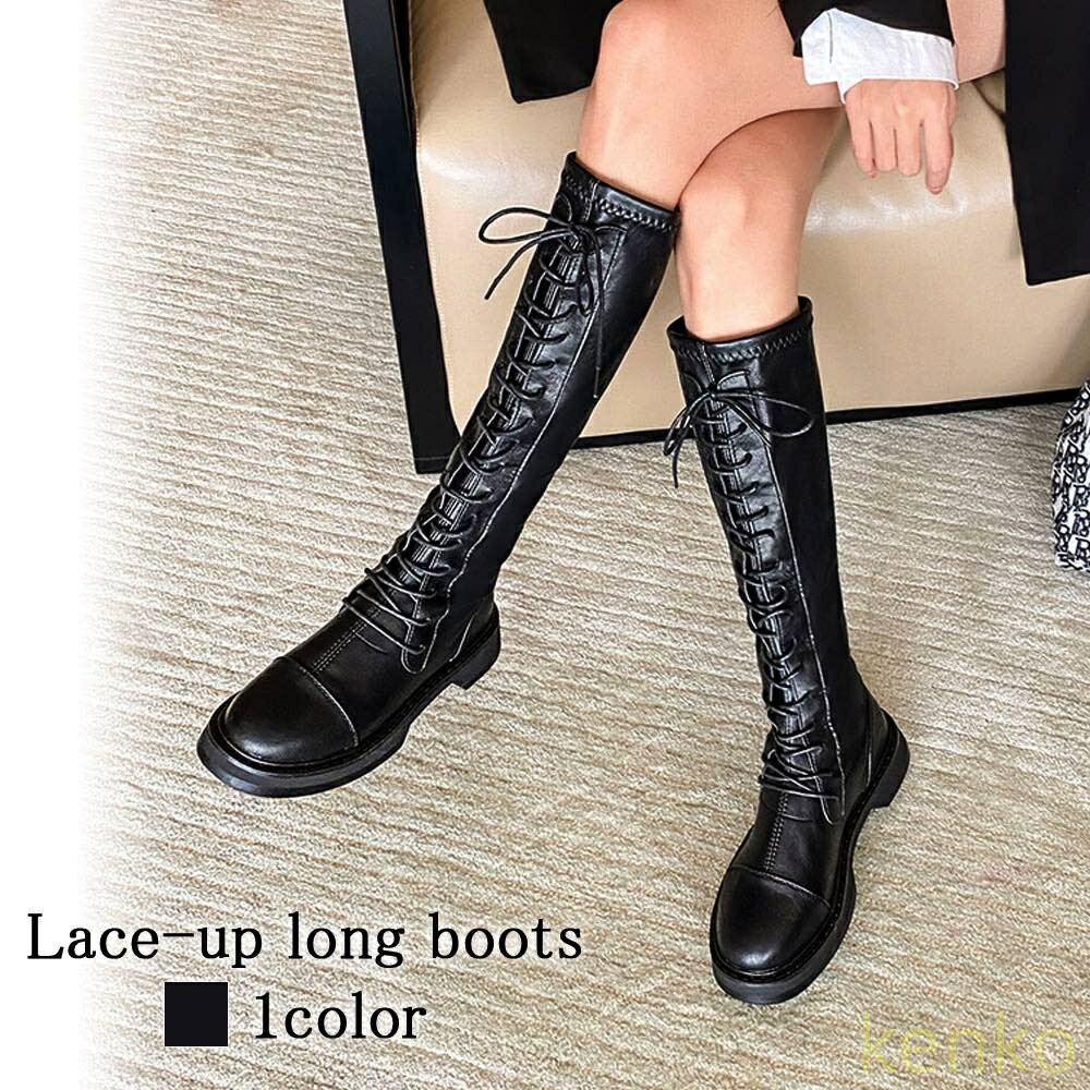 【送料無料】ロングブーツ レディース レースアップロングブーツ 疲れない ジョッキーブーツ ストレッ・・・