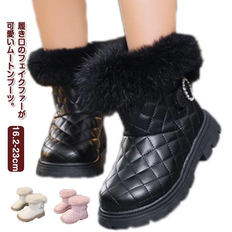 ムートンブーツ キッズ 裏起毛ブーツ ショートブーツ ウインターブーツ あったか 裏ボア フェイクフ・・・