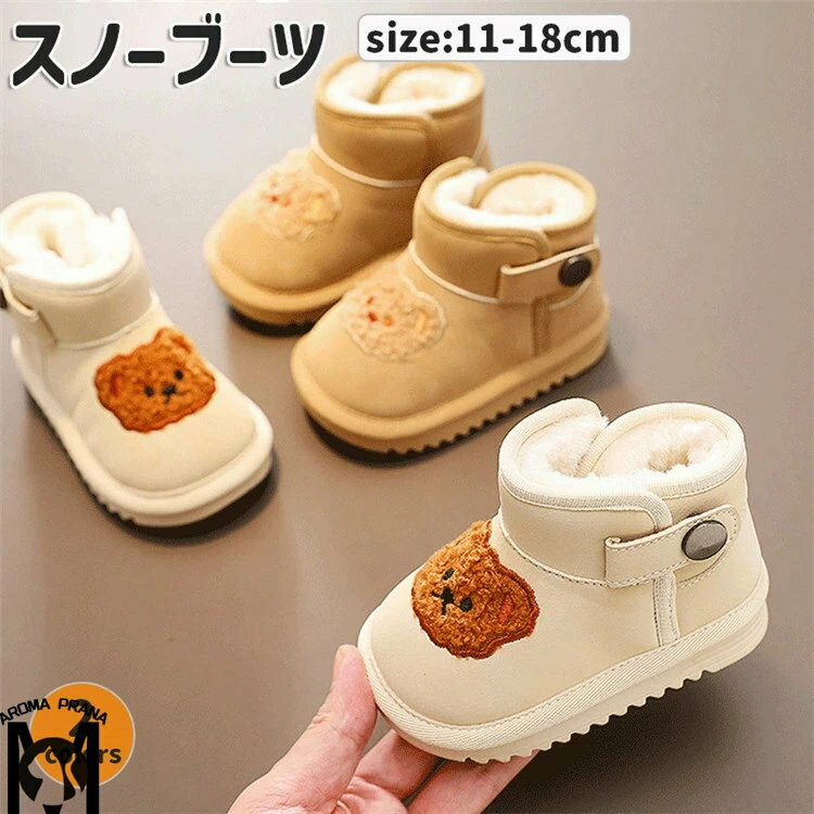 キッズ ムートンブーツ ベビー ブーツ 裏ボア 裏起毛 クマ柄 スノーブーツ 赤ちゃん 女の子 男の・・・