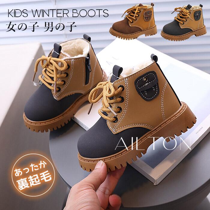 キッズブーツ 裏起毛 ムートンブーツ 女の子 男の子 ショートブーツ ファーブーツ サイドジッパー ・・・