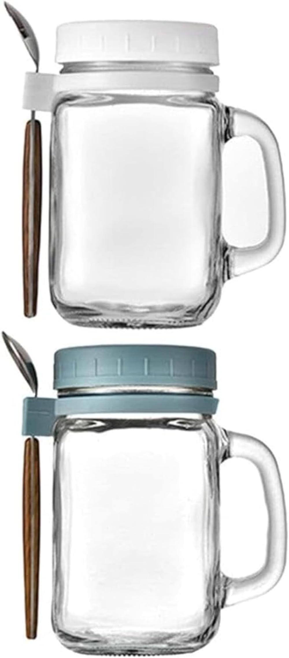 2セット オートミールメイソンジャー ガラスシリアルマグ 蓋とスプーン付きシリアルカップ ハンドル付・・・
