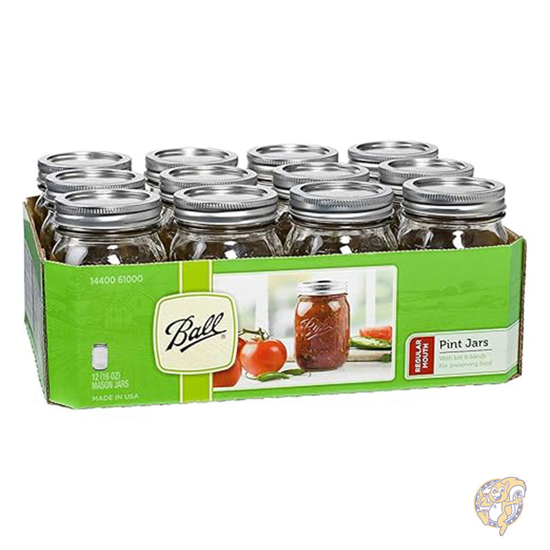 メイソンジャー レギュラーマウス 16オンス 453g 蓋とバンド付き (12 個入り) ボール B・・・