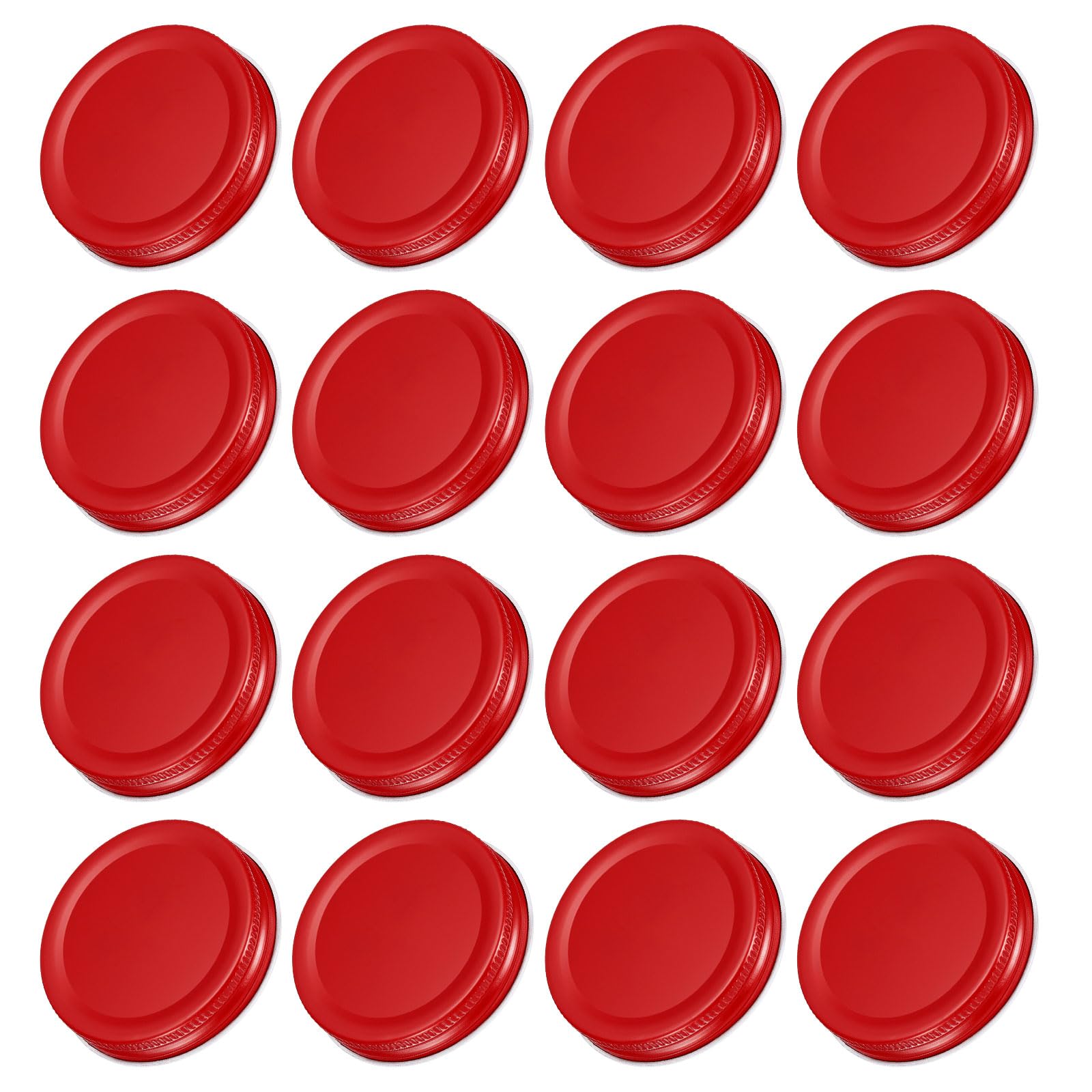 Tメイソンジャーの蓋 缶詰瓶の漏れ防止 キッチン収納 70mm普通口ブリキキャップ レッド 16個