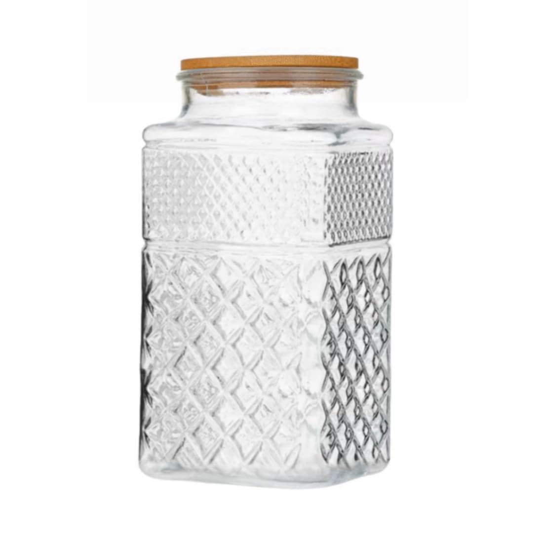 0.87ガロン/120オンスのガラスジャー、竹の蓋、大きなクッキージャー、ガラス食品保存容器、小麦粉・・・