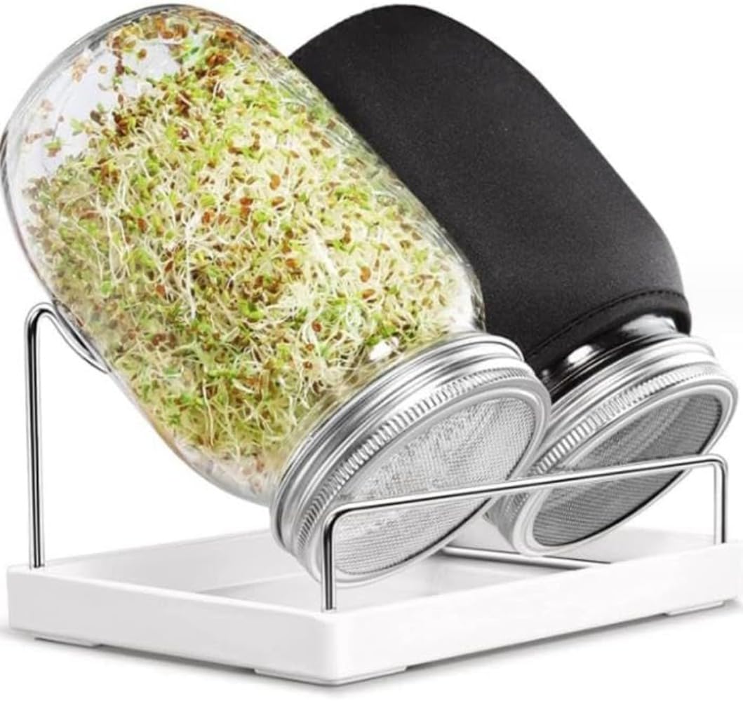 発芽ジャーキット - 広口クォートメイソンジャー2個 316ステンレススチールスクリーンスプラウト蓋・・・
