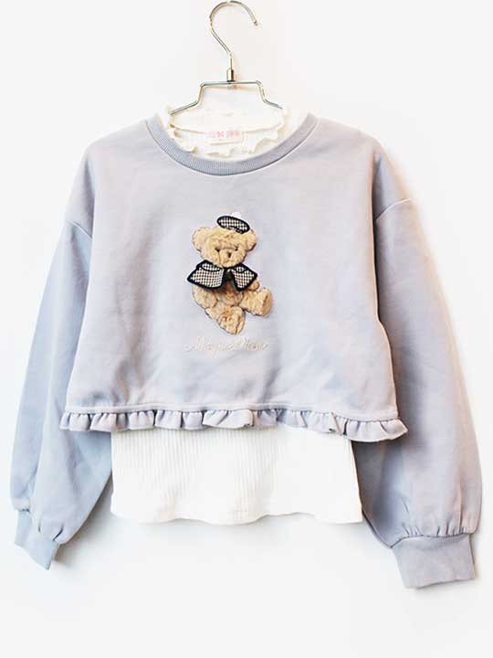 メゾピアノ mezzo piano トレーナー・プルオーバー 110 女の子 ブルーグレー・テディベ・・・