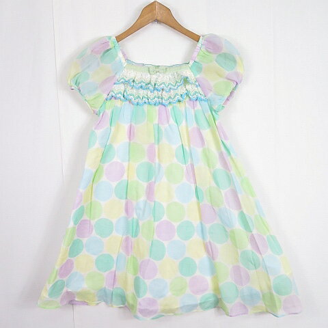 【中古】メゾピアノ mezzo piano ワンピース パフスリーブ バックリボン 140 パステル・・・
