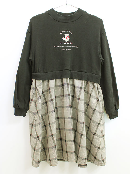 メゾピアノ 長袖ワンピース 160cm(L) キッズ 女児 黒×チェック【中古】【新入荷!】▲
