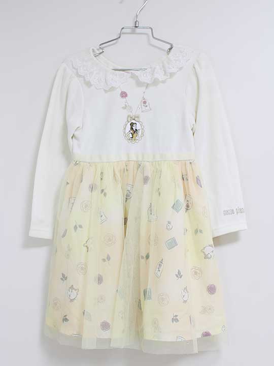 メゾピアノ 長袖ワンピース 110cm キッズ 女児 黄色×白 【中古】△