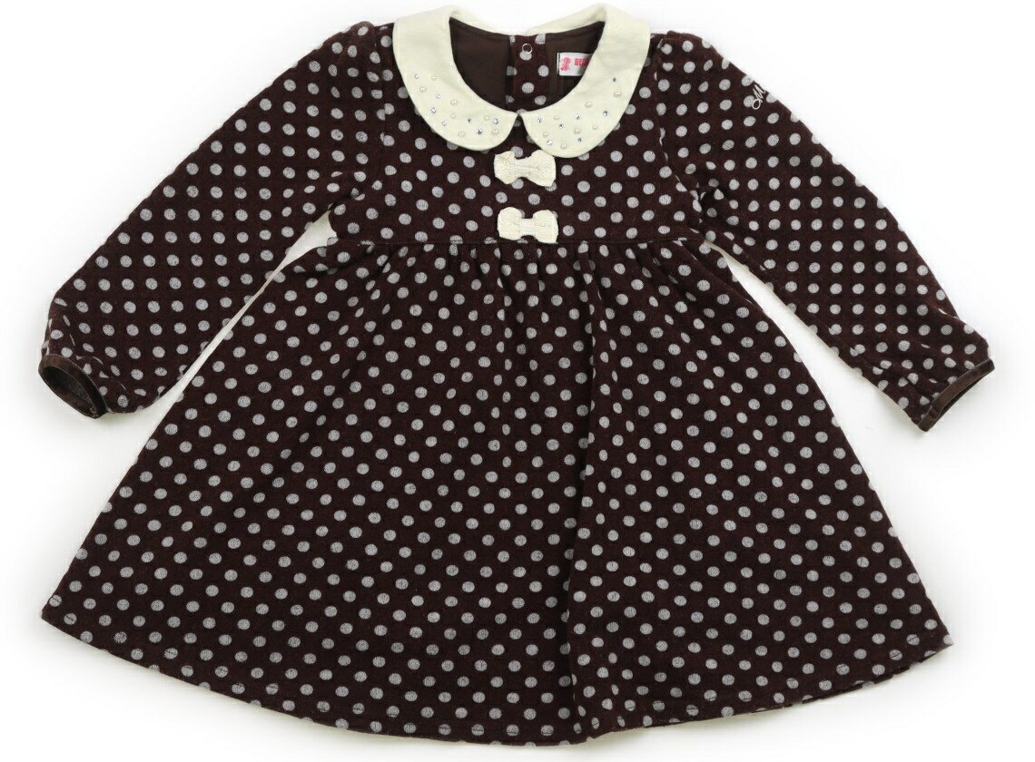 メゾピアノ mezzo piano ワンピース 100 女の子 ブラウン×ホワイトドット 子供服 ベ・・・