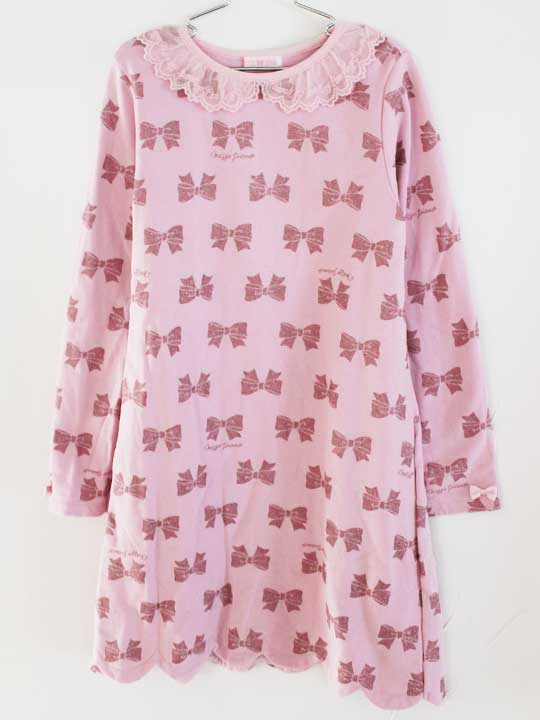 メゾピアノ 長袖ワンピース 140cm キッズ 女児 ピンク【中古】★