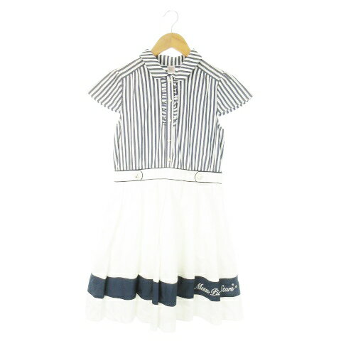 【中古】メゾピアノ mezzo piano ドッキングワンピース ミニ 半袖 襟付き 丸襟 切替 ス・・・