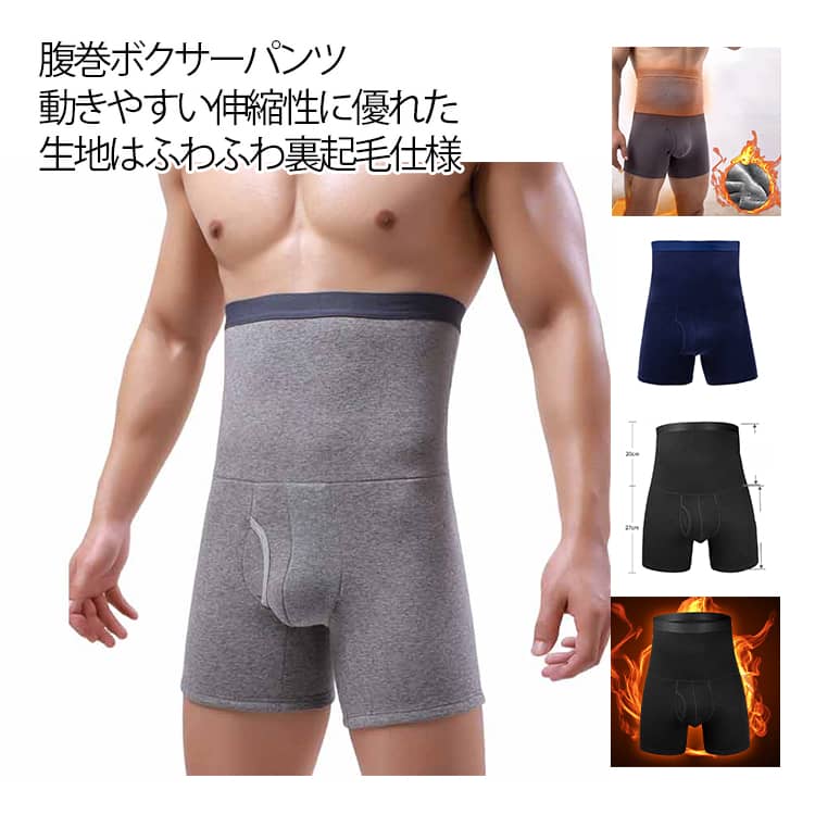 メンズ 腹巻き付きボクサーパンツ 裏起毛 防寒インナー ロング丈 前開き ハイウェスト 冷え対策 厚・・・