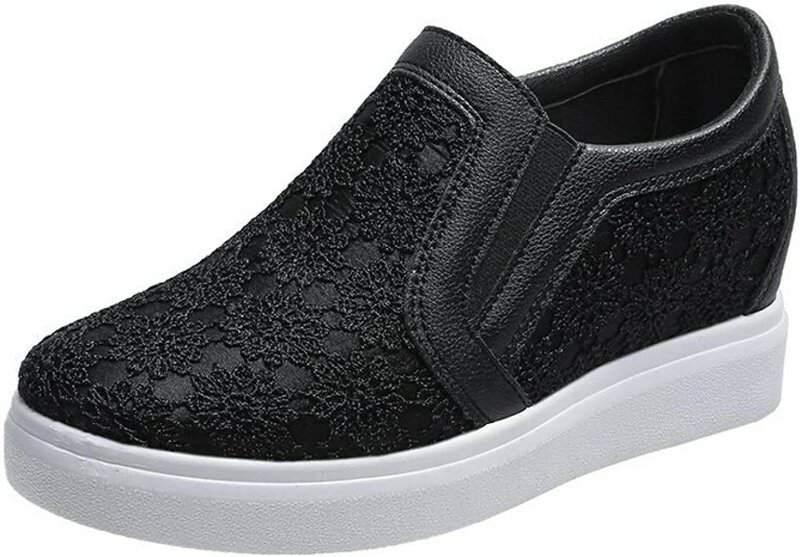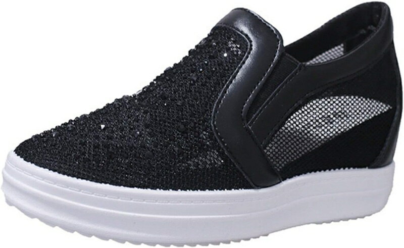 ローファー キラキラ スニーカー インヒール メッシュレース ラウンドトゥ レディース スポーツシュ・・・