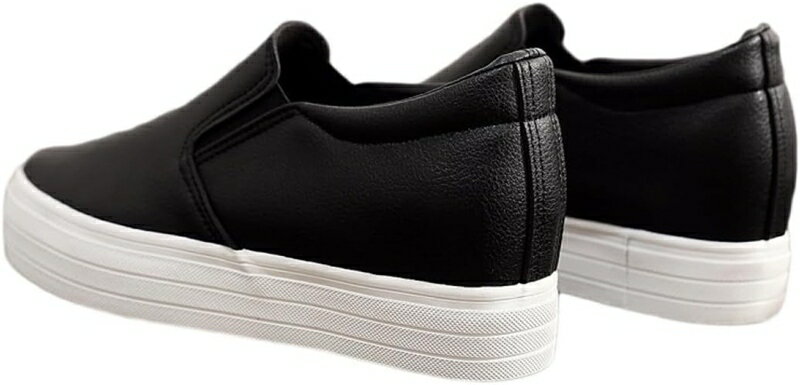 厚底スリッポン シークレットシューズ スニーカー インヒール フラットシューズ レディース 白 黒 ・・・