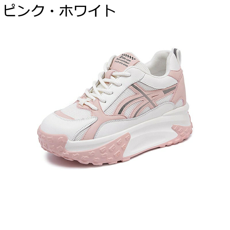 インヒールスニーカー 厚底 8cmUP レディース シークレットシューズ レースアップ 軽量 可愛い・・・