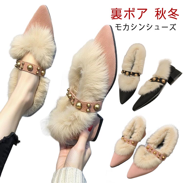 モカシン レディース ファー ローファー モカシンシューズ カシン裏起毛 パンプス 裏ボア レディー・・・