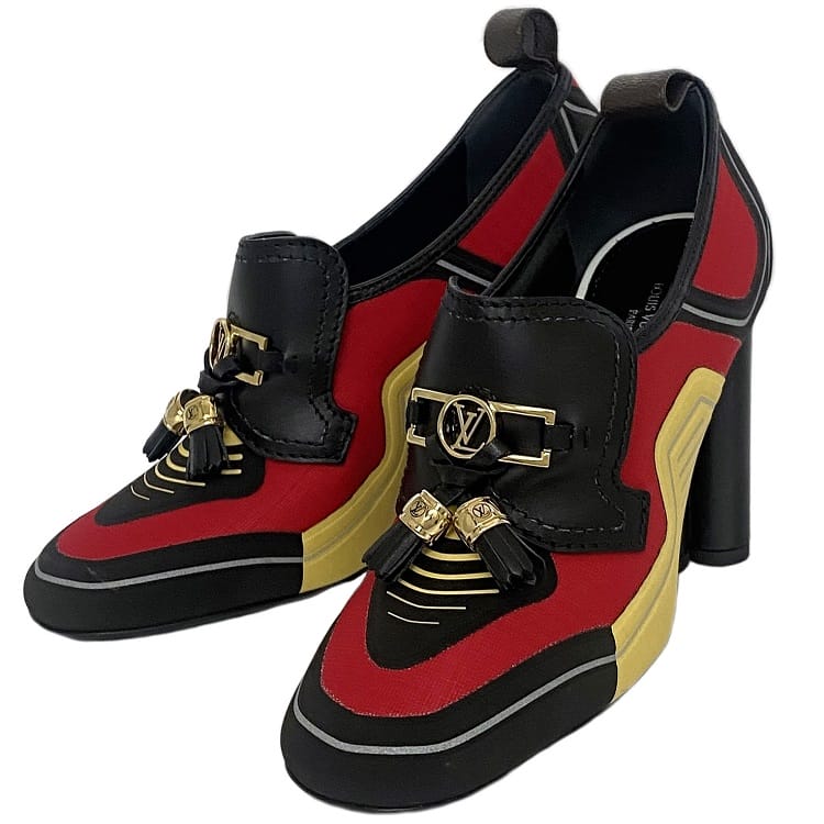【送料無料】 ルイ ヴィトン ローファー ブラック レッド イエロー モノグラム 美品 23.5cm・・・