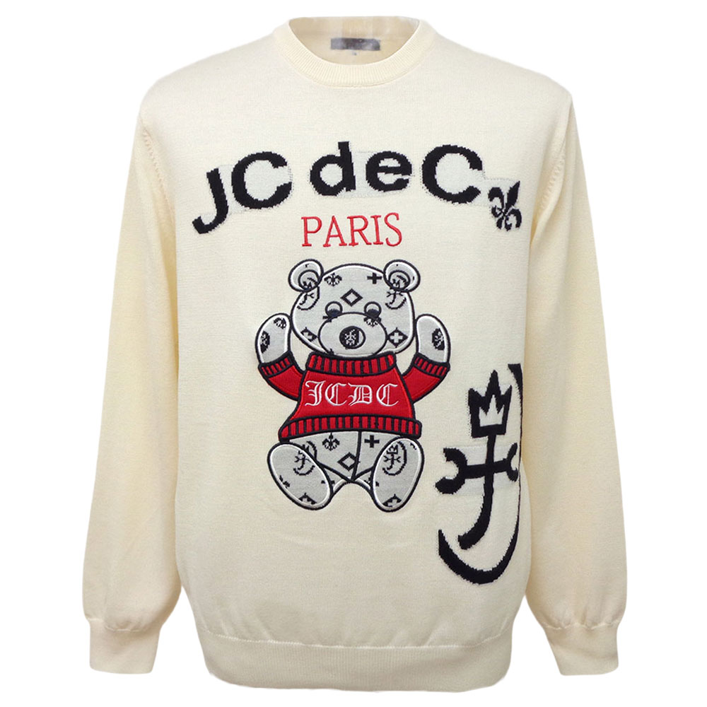 40%OFF 2024秋冬 カステルバジャック 薄手 モノグラム柄くま刺繍 丸首セーター (オフ白)・・・