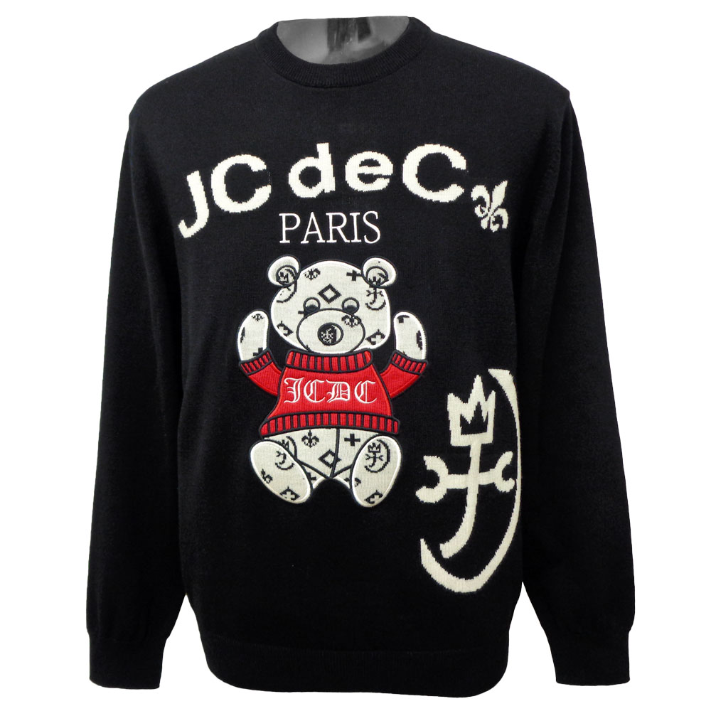 40%OFF 2024秋冬 カステルバジャック 薄手 モノグラム柄くま刺繍 丸首セーター (黒) (・・・