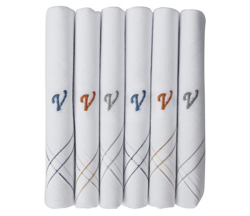 [CarusoItaly]メンズイニシャルモノグラム刺繍100%ピュアコットンハンカチホワイトベース・・・