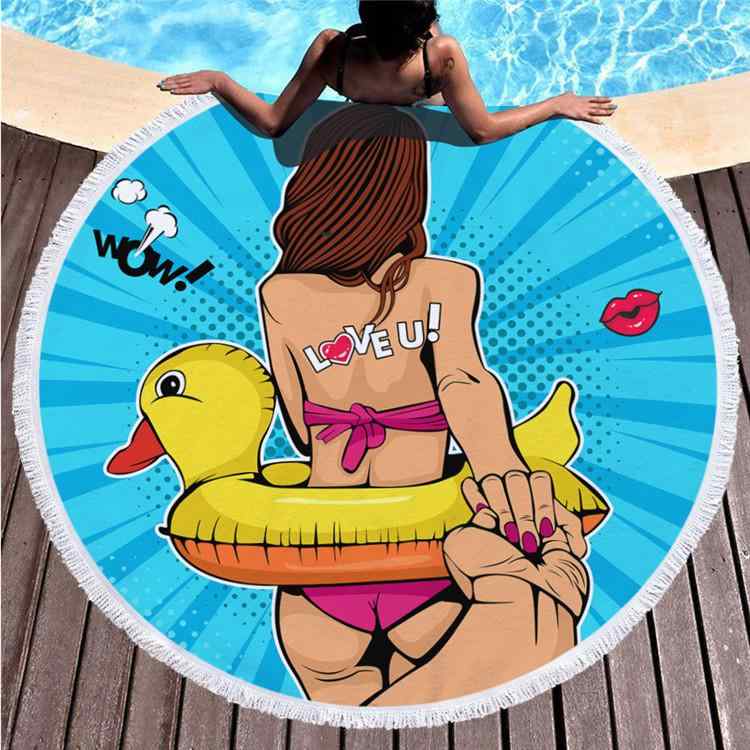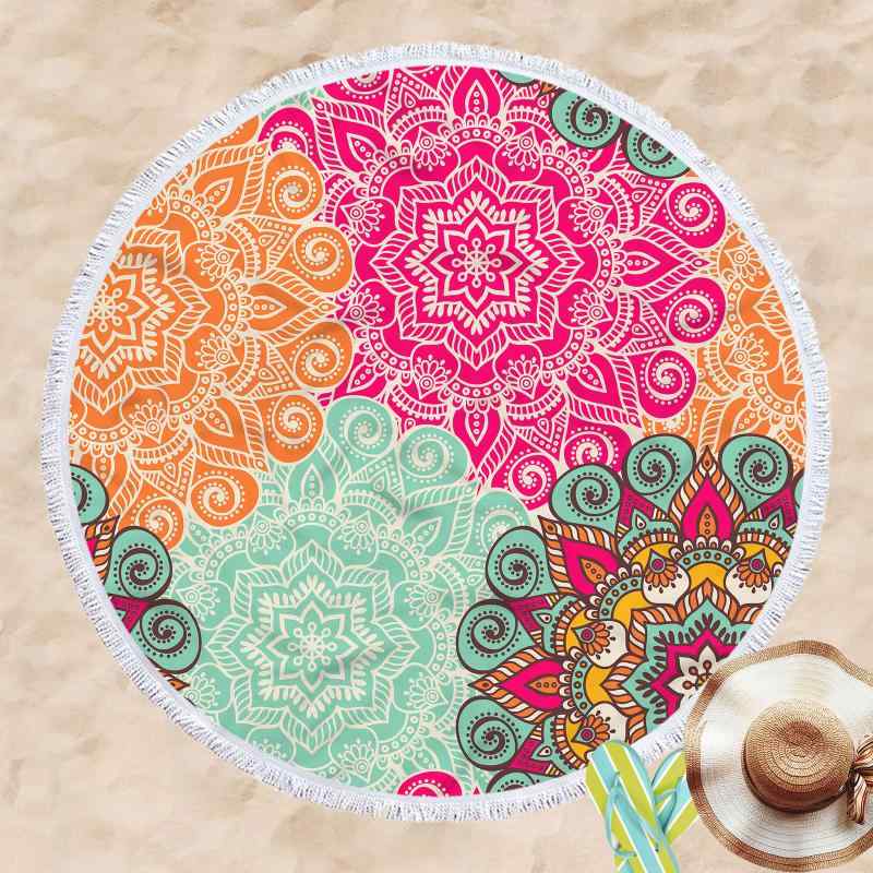 ビーチタオル ビーチマット 円形 丸型 プリント柄 3Dデジタル印刷 ショール ストール ランチョン・・・