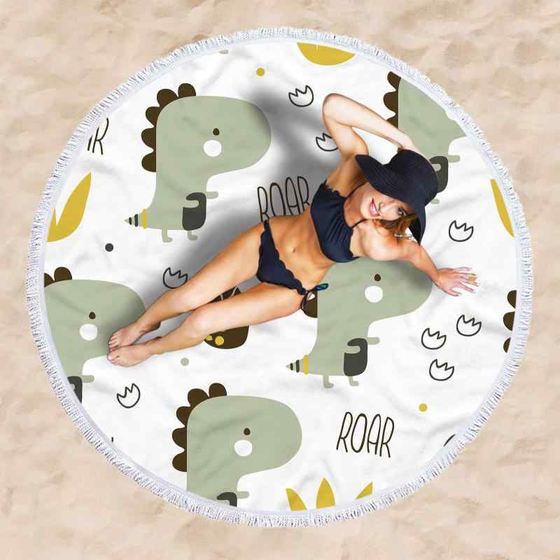 ビーチタオル マイクロファイバー 円形 大判 3Dプリント 恐竜柄 吸水 速乾 ショール ひざ掛け ・・・