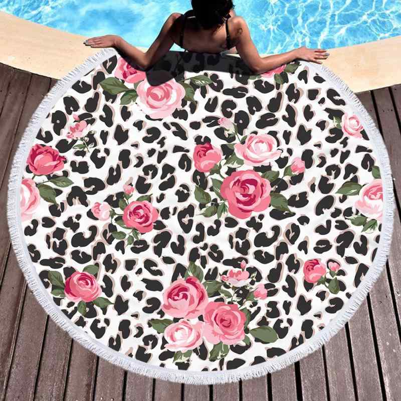 ビーチタオル ラウンド マイクロファイバー ユニコーン ヒョウ柄 フリンジ付き 3Dプリント 吸湿速・・・