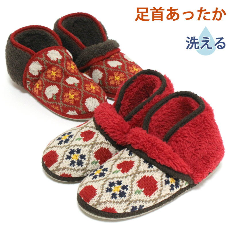 ルームブーツ エプレ りんご柄 ニット ボア 甲折り返し2way 洗える 樹脂加工底 滑り止め付き ・・・
